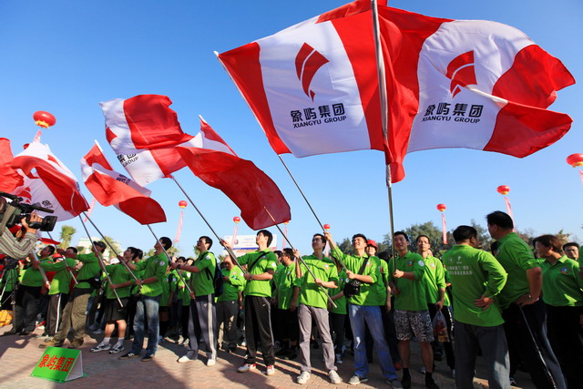 旗幟飄揚,千人象嶼團(tuán)隊分外引人注目。