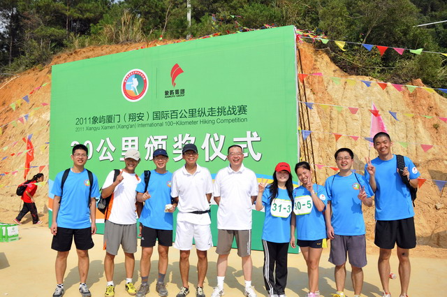 30公里縱走賽是組委會特別為業(yè)余組的選手開設(shè)的,分為團(tuán)隊(duì)賽和個(gè)人賽,終點(diǎn)設(shè)在翔安的準(zhǔn)提寺。我與同事施閩南、丁奕峰和賀曉娟組成了“閩南一隊(duì)”。