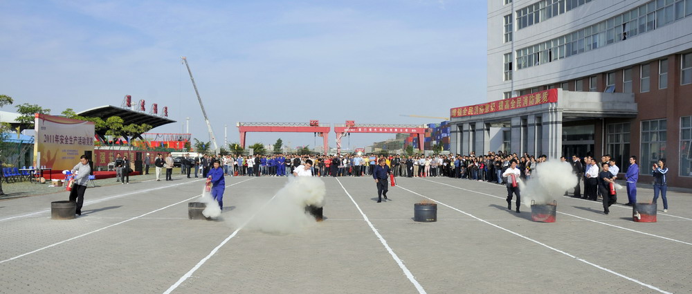 為提高企業(yè)管理人員安全生產(chǎn)知識和管理水平,提高職工安全生產(chǎn)技能和自我保護(hù)意識,加強工會群眾監(jiān)督,提高全員安全知識水平,11月25日,集團(tuán)在現(xiàn)代碼頭行政樓前廣場聯(lián)合主辦了一場安全生產(chǎn)活動競賽。集團(tuán)共有16支代表隊160人參賽,各公司還組織員工現(xiàn)場觀摩學(xué)習(xí),現(xiàn)場人數(shù)逾200人。象嶼保稅區(qū)安監(jiān)局領(lǐng)導(dǎo)、廈門消防支隊寨上中隊官兵也到場指導(dǎo)觀摩。