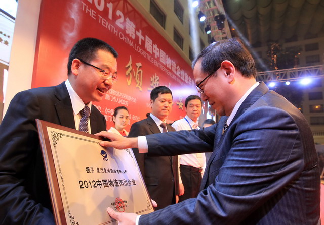 在11月23日舉行的中國物流企業(yè)家年會上,廈門象嶼股份有限公司榮獲“2012中國物流杰出企業(yè)”稱號。