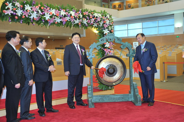 廈門市人民政府葉重耕副市長及象嶼股份王龍雛董事長共同敲鑼開盤