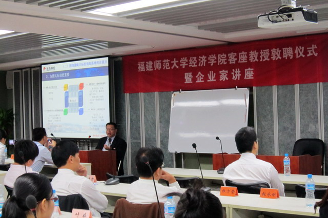 9月24日,象嶼股份總經(jīng)理鄧啟東應邀來到福建師范大學倉山校區(qū)參加“福建師范大學經(jīng)濟學院客座教授敦聘儀式暨企業(yè)家講座”活動。敦聘儀式上,福建師范大學MBA教育中心常務副主任章竟代表福師大致歡迎辭,經(jīng)濟學院李建建院長為鄧啟東總經(jīng)理佩戴校徽并頒發(fā)了聘書。